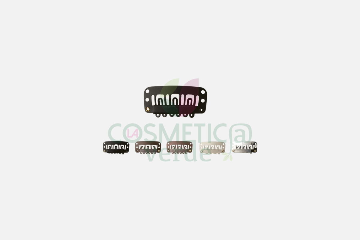 Piccole clips con 6 dentini in metallo di varie tonalità, permettono l’applicazione delle ciocche in modo rapido e sicuro. Utili per rigenerare vecchie extensions con clip o per l’applicazione di tessiture She, da cucire sulla banda tessuta con del semplice cotone.